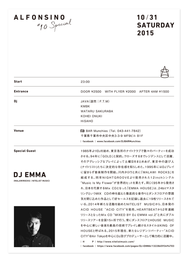 DJ HiSAHO主催のイベント “Alfonsino”